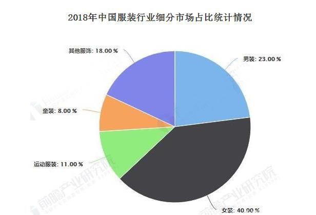 随着经济的发展,消费者的消费习惯趋于成熟,消费需求相应更加多元化、个性化,也由此形成了不同的细分市场。根据欧睿的调查数据显示,2018年,中国服装行业中,女装市场占比最大,达40%;其次是男装、运动、童装,2018年三者占比分别达23%、11%、8%。